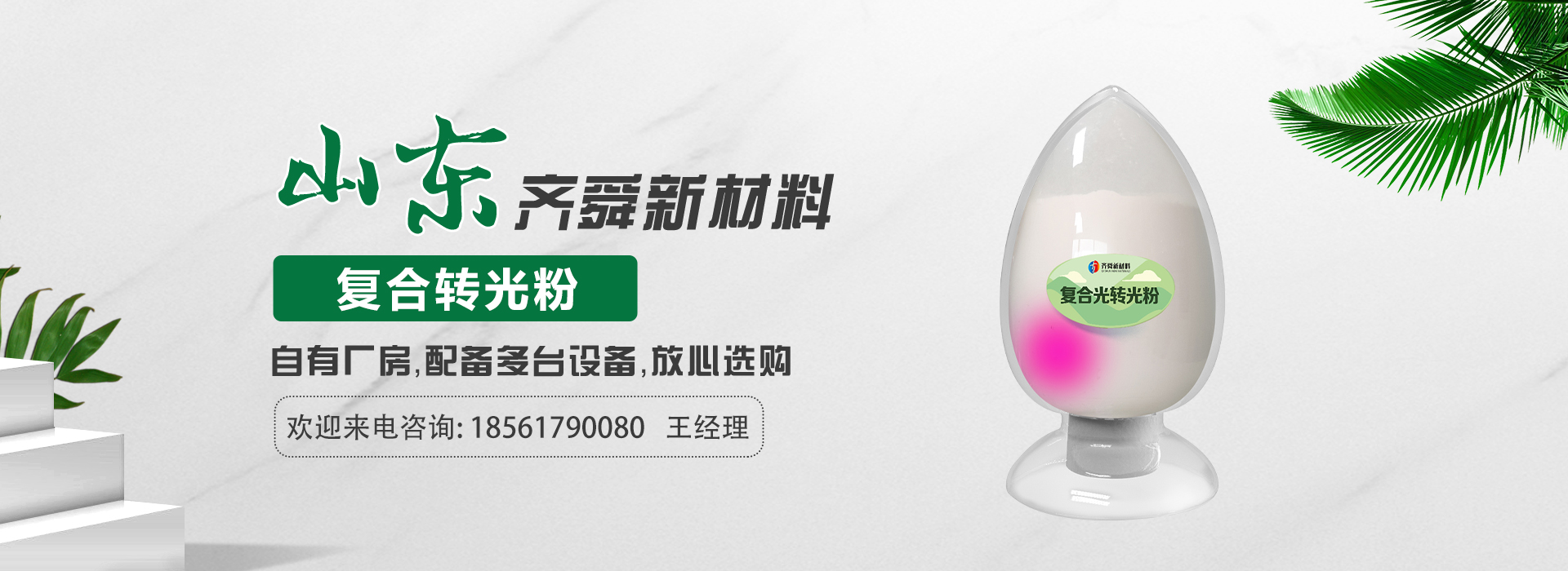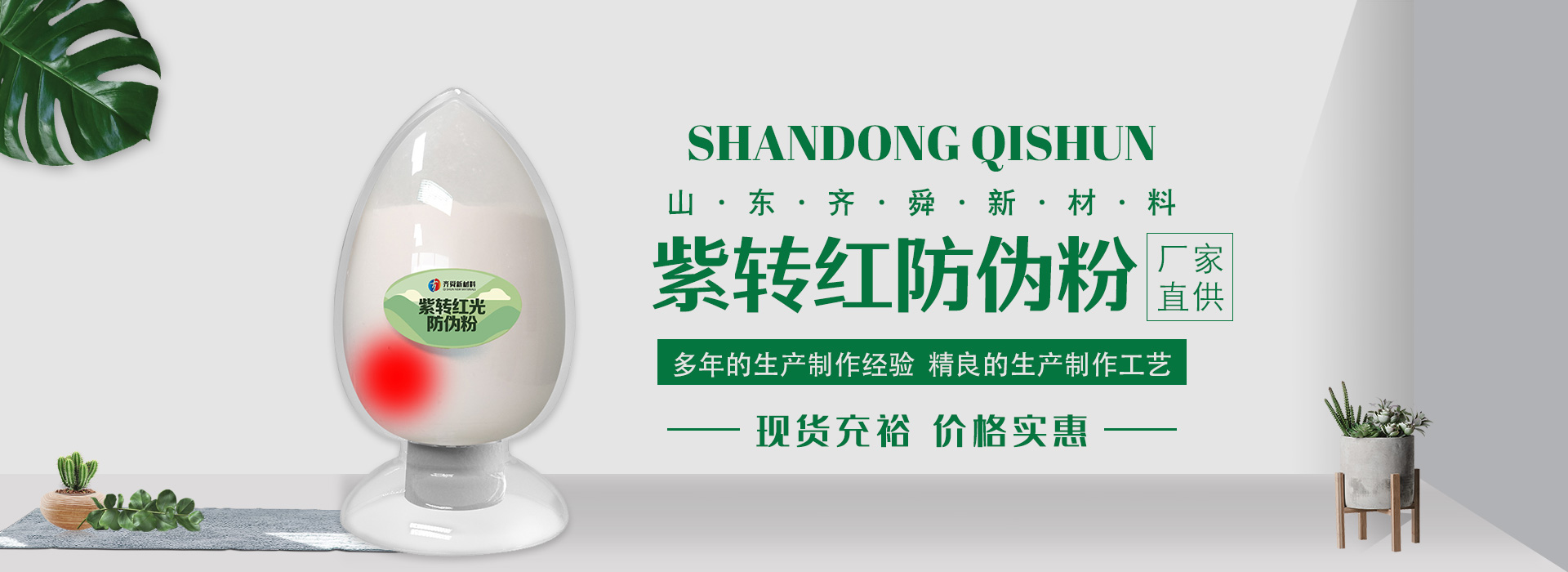 我公司前身为2011年成立的淄博舜明荧光科技有限公司。随着公司的发展,厂址从淄博搬迁到青岛,2020年5月公司重新注册为山东齐舜新材料有限公司。公司注册资本2000万元,主要从事新材料研究和开发。目前主要产品包括:农膜用转光粉、转光母粒以及转光农膜;农膜用长效防雾流滴涂覆液;复合肥添加剂及叶面肥(稀土微肥);防伪粉;LED封装荧光粉;夜光粉;太阳能光伏电池增效荧光粉;锂电池正极材料等。
